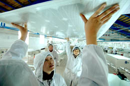 中國用于可再生能源研發(fā)的投資已位居全球前列,在太陽能和風能利用方面居于領先位置。圖為浙江省公元太陽能科技有限公司工人正在檢查太陽能光伏電池板。