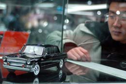 中國(guó)長(zhǎng)春汽車文化園展銷中心正式“開門迎客”,它是繼汽車博物館之后,中國(guó)長(zhǎng)春汽車文化園中第二個(gè)向社會(huì)開放的項(xiàng)目,該中心總建筑面積約5萬平方米,可以同時(shí)展賣上千輛商務(wù)及家庭用車,規(guī)模在東北地區(qū)首屈一指。圖為一位參觀者在欣賞展銷中心內(nèi)的紅旗車模型。 |