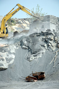 挖掘機(jī)正對礦山違法開采加工點(diǎn)進(jìn)行拆除。 | 礦產(chǎn)資源是我國經(jīng)濟(jì)和社會(huì)發(fā)展的物質(zhì)基礎(chǔ)。我國90%的能源、95%以上的工業(yè)和農(nóng)業(yè)原材料都來自于礦產(chǎn)資源。然而,由于隨著人口的快速增長,國家工業(yè)化程度的快速發(fā)展,資源供需矛盾日益突出,我國礦產(chǎn)資源面臨的形勢日益嚴(yán)峻,對外依存度將長期居高,礦產(chǎn)資源能否可持續(xù)供應(yīng)將是全社會(huì)關(guān)注的重大問題。 中國工程院院士、礦床地質(zhì)學(xué)家陳毓川日前在云南參加紅河論壇時(shí)表示,我國應(yīng)繼續(xù)實(shí)施找礦戰(zhàn)略,開拓新礦產(chǎn)資源領(lǐng)域,實(shí)施戰(zhàn)略礦產(chǎn)資源儲(chǔ)備等,以保證我國礦產(chǎn)資源的可持續(xù)供應(yīng),解決我國經(jīng)濟(jì)發(fā)展過程中出現(xiàn)的資源制約問題。