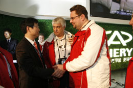 奇瑞汽車董事長尹同耀與海外經(jīng)銷商交談。 | 本報訊