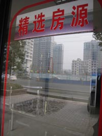 一家關門后的房產(chǎn)中介公司門口,往日掛滿房源廣告的玻璃窗變得空空蕩蕩。 本報記者:黃深鋼