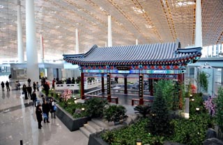 | 文化景觀扮靚首都機(jī)場(chǎng)第三航站樓。新華社記者 王建華