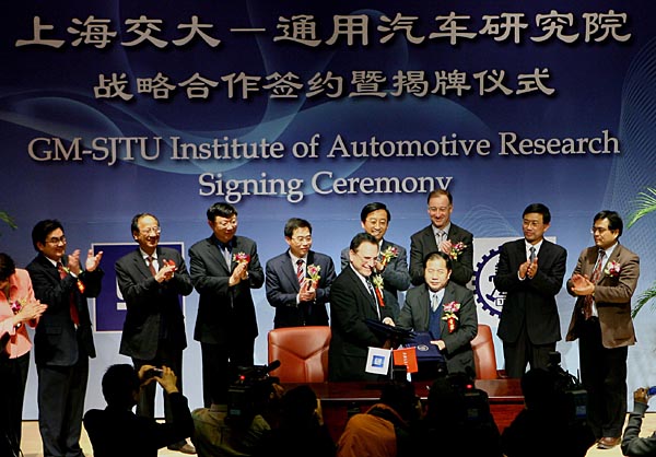 近日,上海交通大學(xué)——通用汽車研究院在上海交大正式成立。通用汽車按計(jì)劃在未來(lái)五年內(nèi)為研究院投入400萬(wàn)美元,用于推進(jìn)通用汽車與上海交大在汽車聯(lián)合體技術(shù)研發(fā)及專業(yè)人才培養(yǎng)領(lǐng)域內(nèi)的合作。這是上海交通大學(xué)——通用汽車研究院戰(zhàn)略合作簽約儀式現(xiàn)場(chǎng)。