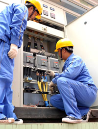 重慶市電力公司日前宣布,經(jīng)過專家組驗(yàn)收,璧山縣正式成為重慶市第一個(gè)電氣化縣。圖為電業(yè)工人在重慶璧山縣新堰村對供電設(shè)備進(jìn)行檢查。
