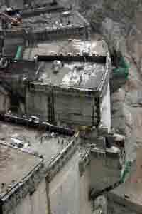 位于青海省貴德縣與貴南縣交界黃河干流之上的拉西瓦水電站,動態(tài)投資達149億元,是黃河流域裝機容量最大(4200兆瓦)、大壩最高(最大壩高250米)、單機容量最大(單機容量700兆瓦的水輪發(fā)電機組6臺)的水電站。 該電站預(yù)計2011年6月竣工,建成后將是黃河流域乃至中國北方發(fā)電量最多、單位千瓦成本最低的水電站,每年能提供102億度電的清潔能源。圖為緊張施工的拉西瓦水電站建設(shè)現(xiàn)場。 |