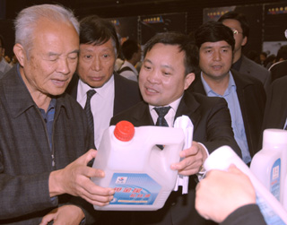 神舟七號(hào)的發(fā)射成功引起了人們對(duì)航天科技的極大關(guān)注。記者在近日舉行的神舟七號(hào)科普展上了解到,神七太空之旅圓滿(mǎn)完成了空間固體潤(rùn)滑材料試驗(yàn)項(xiàng)目,該潤(rùn)滑材料一旦用于汽車(chē)可以節(jié)省燃油2%,一年就能為國(guó)家節(jié)約200億元至300億元。圖為中國(guó)石化潤(rùn)滑油公司副總經(jīng)理李亮耀向原國(guó)防科工委副主任懷國(guó)模中將介紹中國(guó)航天潤(rùn)滑技術(shù)。 |