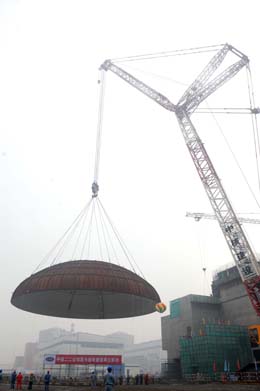 11月6日,重達(dá)170噸的鋼構(gòu)穹頂開始起吊。穹頂?shù)跹b,是核電站建設(shè)的一個(gè)重大節(jié)點(diǎn),重達(dá)170噸的鋼構(gòu)穹頂要采用履帶式吊機(jī)進(jìn)行吊裝,與反應(yīng)堆廠房對(duì)接,精密度要求很高,最大只允許3毫米的誤差,被形容為“刀刃與刀刃的對(duì)接”。 |