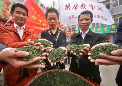 10月份起,安溪縣城河濱南路的新建樓盤“藍溪國際”打出“以茶換房”的促銷奇招。該樓盤總經(jīng)理李廣智介紹,截至目前,該樓盤已置換出去近30套商品房。 李廣智計劃“以茶換房”銷售戶型面積在120平方米至170平方米、均價3500元左右的50套新建商品房!啊圆钃Q房’就是允許茶農(nóng)用茶葉作為買房的30%首付款,余下的70%購房款則需要用銀行貸款支付。”李廣智解釋。 “以茶換房”還有一個先決條件:茶農(nóng)要選送今年新制的茶葉茶樣,并攜帶個人身份證到售樓部,經(jīng)安溪縣境內(nèi)三名高級評茶師共同評定價格,經(jīng)雙方認可后,才可選房、簽約。 安溪縣西坪鎮(zhèn)的茶農(nóng)顏得富就用今年自制的400公斤優(yōu)質鐵觀音茶葉為一套128平方米商品房“支付”了首付款!盀榱撕⒆幽艿匠抢锬顣,我一直想來縣城買房,但縣城一般地區(qū)普通的商品房每平方米都要賣到4000元,太高了,根本買不起!鳖伒酶徽f,“現(xiàn)在,我用今年一年的茶葉就能買到房子,感覺買房壓力沒有原先那么大了。”