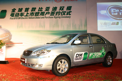 全球首款雙模電動(dòng)車比亞迪F3DM。本報(bào)記者:吳華國 攝 |