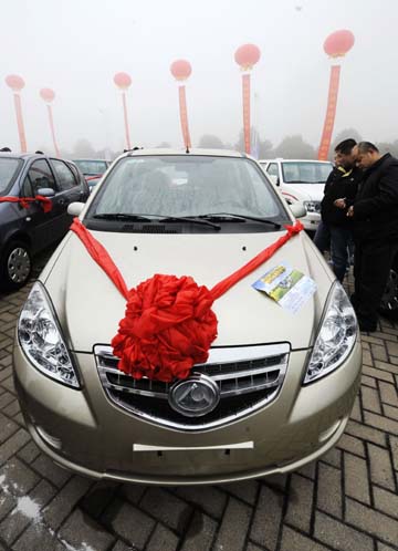 1月9日,湖南省在長沙縣啟動了“汽車下鄉(xiāng)”試點活動,當?shù)剞r(nóng)民購買汽車,除了廠家讓利優(yōu)惠外,政府還將給予補貼和貸款貼息。圖為消費者在“汽車下鄉(xiāng)”活動現(xiàn)場選購長豐獵豹汽車。本報記者:龍弘濤