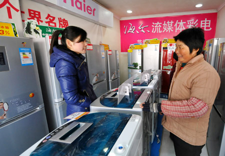 安徽省開(kāi)展家電下鄉(xiāng)以來(lái),農(nóng)村家電下鄉(xiāng)銷(xiāo)售網(wǎng)點(diǎn)的家電銷(xiāo)售持續(xù)火爆,特別是臨近春節(jié),一些鄉(xiāng)鎮(zhèn)銷(xiāo)售網(wǎng)點(diǎn)的家電銷(xiāo)售量比開(kāi)展家電下鄉(xiāng)以前大幅增加。