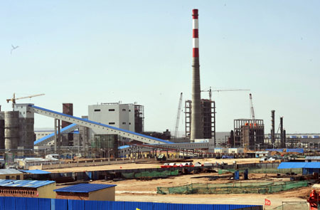 這是建設(shè)中的寧東能源化工基地(3月17日攝)。 寧東能源化工基地是寧夏經(jīng)濟發(fā)展的“一號工程”,寧夏規(guī)劃用5年至10年時間把寧東基地打造成國家級的煤炭基地、火電基地、能源化工基地和國家級循環(huán)經(jīng)濟示范區(qū)。目前在寧東的投資已達500億元,進入大規(guī)模開發(fā)的新階段。