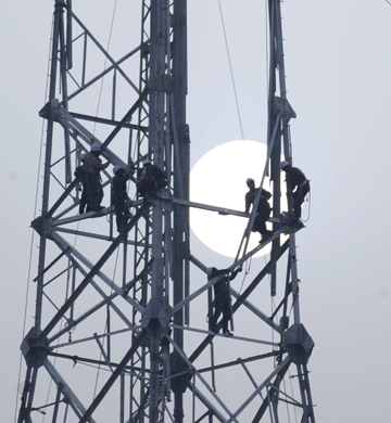 記者從天津市電力公司了解到,為服務(wù)濱海新區(qū)經(jīng)濟增長和保障民生,天津今年將投入46億元,進一步加快電力基礎(chǔ)設(shè)施建設(shè)改造,強化電網(wǎng)對濱海新區(qū)經(jīng)濟社會發(fā)展的支撐作用。圖為電力建設(shè)者迎著朝陽在濱海新區(qū)菜家堡進行高壓電網(wǎng)架設(shè)作業(yè)。本報記者:劉海峰