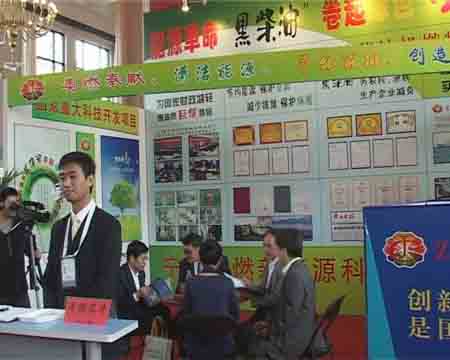 圖為具有自主知識產(chǎn)權(quán)的高科技專利成果——“奧里油改性柴油機替代燃料”展區(qū)一角。