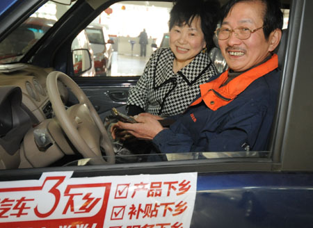 為配合國家“汽車下鄉(xiāng)”實(shí)施細(xì)則出臺(tái),黑龍江省于3月底在哈爾濱市舉辦第四屆百姓購車周活動(dòng)。活動(dòng)一拉開序幕,各地前來購車的農(nóng)民就像潮水一樣涌上來了。 長安昊業(yè)汽車經(jīng)銷有限公司是黑龍江省省級(jí)代理商,銷售經(jīng)理曹東文告訴記者,眼下公司60%的客戶都是農(nóng)民,F(xiàn)在農(nóng)民敢花錢了,有了國家政策,可買可不買的,都被爭取過來了。一個(gè)月下來,他們店汽車銷售量達(dá)490多臺(tái),其中近300臺(tái)是農(nóng)民買走的。