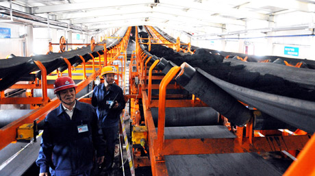 日前,有“塞上梅花第一井”之稱的寧夏神華寧煤集團(tuán)梅花井煤礦開始出煤。這家煤礦井田內(nèi)含煤地層厚度299米,地質(zhì)儲量25億噸,礦井總投資34.6億元,煤礦生產(chǎn)能力在2013年將達(dá)到1200萬噸。4月27日,兩名工人在洗煤車間巡視。