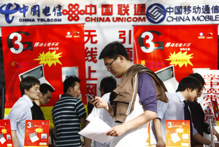 隨著世界電信日的臨近,中國移動、中國電信和中國聯(lián)通三大運營商逐步投入商用的3G業(yè)務(wù)受到消費者的高度關(guān)注,3G時代三大運營商的市場份額競爭也將愈演愈烈。新華社記者:裴鑫