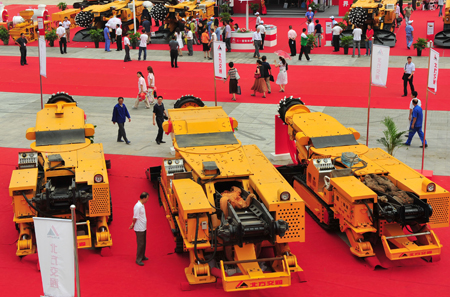 6月18日,寧夏能源及電力產(chǎn)業(yè)博覽會(huì)在銀川國(guó)際會(huì)展中心開幕,來自國(guó)內(nèi)外的360多家裝備制造企業(yè)參展。這是展會(huì)上展出的大型采掘設(shè)備。