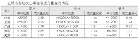 ■五城市各檔次二手住宅成交量變動(dòng)情況