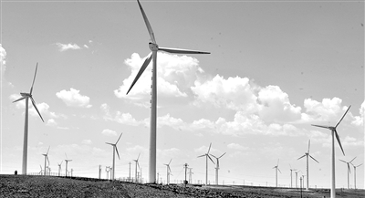 寧夏將大規(guī)模開發(fā)以風(fēng)能、太陽(yáng)能為代表的綠色能源。根據(jù)自治區(qū)政府最新出臺(tái)的新能源發(fā)展規(guī)劃,到2020年,寧夏風(fēng)電總裝機(jī)將達(dá)到500萬(wàn)千瓦以上,建成200萬(wàn)千瓦太陽(yáng)能光伏并網(wǎng)項(xiàng)目,屆時(shí)新能源發(fā)電占全區(qū)電力總裝機(jī)容量的比重達(dá)18%。圖為寧夏太陽(yáng)山風(fēng)力發(fā)電場(chǎng)一角。 |