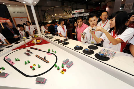 在日前舉行的2009中國(guó)國(guó)際消費(fèi)電子博覽會(huì)(SINOCES)上,觀眾正在了解全球首款不用彎腰操作的洗衣機(jī)。 |