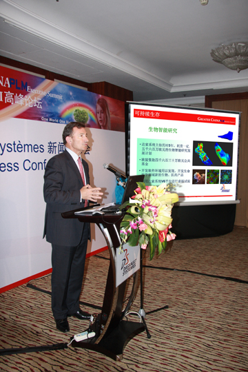 達(dá)索系統(tǒng)全球總裁兼執(zhí)行長(zhǎng)伯納德·查爾斯在西安“2009大中華區(qū)PLM高峰論壇”上演講虛擬制造技術(shù)如何進(jìn)入生物智能研究領(lǐng)域。本報(bào)記者