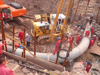 一年多來,中國石油煤層氣輸送管道建設(shè)不斷加快。據(jù)華油工建山西煤層氣項目經(jīng)理劉金勇介紹,由于山西管道施工地點多選在太行山深處,峽谷眾多,溝壑縱橫,施工環(huán)境十分惡劣。集輸管道60%的作業(yè)面分布在30度到70度的陡坡上,最高落差達(dá)200余米。對此,項目部采取了集中存放、分段分批量運送及布管的方法進(jìn)行施工。在施工區(qū)域狹隘的陡坡,采用卷揚機牽引、自上而下的施工方法;在施工區(qū)域較寬的陡坡采用開挖“之”字便道、休整設(shè)備停放平臺的方法,確保施工安全。