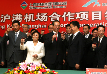 10月12日,上海機(jī)場(集團(tuán))有限公司與香港機(jī)場管理局在上海舉行滬港機(jī)場合作項(xiàng)目簽約儀式,雙方合資成立上海滬港機(jī)場管理有限公司,管理上海機(jī)場集團(tuán)所屬的虹橋機(jī)場的東、西兩個(gè)航站樓、虹橋綜合交通樞紐東交通中心與旅客流程相關(guān)區(qū)域,以及航站樓商業(yè)零售業(yè)務(wù)。