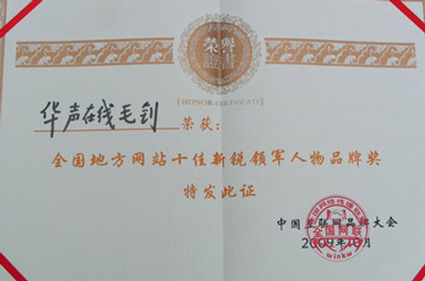 全國地方網(wǎng)站十佳新銳領(lǐng)軍人物品牌獎證書