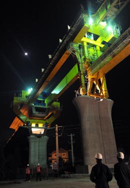 滬杭高鐵鋪架順利跨越運(yùn)行鐵路線,進(jìn)入無(wú)障礙施工階段。新華社記者