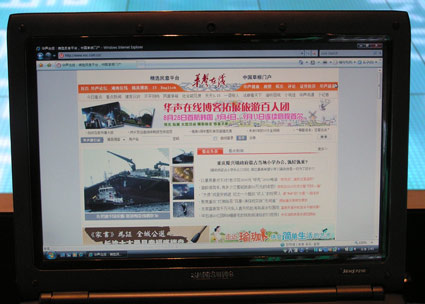 在韓國首爾三星公司多媒體中心瀏覽華聲在線首頁