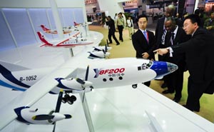 中國航空工業(yè)高調(diào)亮相北京航展。之前在香港亮相的國產(chǎn)大飛機C919模型等,引起廣泛關(guān)注。新華社記者 王建華 攝 |