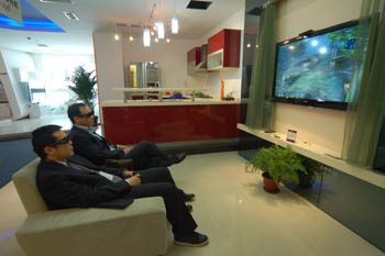隨著上海世博會(huì)的開(kāi)放,業(yè)內(nèi)首家全面展示電視機(jī)發(fā)展歷史及未來(lái)技術(shù)發(fā)展方向的長(zhǎng)虹視像博覽館也于4月29日正式開(kāi)門(mén)迎客。 長(zhǎng)虹“視博館”以全景式紀(jì)錄、描繪了中國(guó)電視工業(yè)發(fā)展的歷史、現(xiàn)在和未來(lái),首次展示了與我們家庭生活緊密相關(guān)的電視機(jī)的“前世今生”,是中國(guó)百姓生活由貧至富的一個(gè)縮影。展館除了中國(guó)第一臺(tái)古董級(jí)老電視,還展示了長(zhǎng)虹目前及未來(lái)將推出的最新技術(shù)、概念產(chǎn)品。 長(zhǎng)虹“視博館”不僅在外觀上具有強(qiáng)烈的視覺(jué)沖擊力,各類產(chǎn)品的開(kāi)放式互動(dòng)體驗(yàn)也讓觀者經(jīng)歷了一次未來(lái)科技的震撼。進(jìn)入場(chǎng)館,吸引大眾目光的是從1972年的第一臺(tái)黑白電視到現(xiàn)在大屏幕平板電視的發(fā)展史;最讓人驚嘆的是在“歷史長(zhǎng)廊”里展示的“古董級(jí)電視”。值得一提的是,這些電視最古老的有近半個(gè)世紀(jì)的歷史。 整個(gè)長(zhǎng)虹視博館中,最令人震撼的莫過(guò)于長(zhǎng)虹家庭3D電影院,這是長(zhǎng)虹視博館的最大亮點(diǎn)。2010年南非世界杯將首次采用3D轉(zhuǎn)播,作為具有領(lǐng)先技術(shù)的長(zhǎng)虹3D電視自然成為關(guān)注焦點(diǎn)。據(jù)悉,長(zhǎng)虹的3D技術(shù)不僅被應(yīng)用在顯示上,還會(huì)被融匯于體感游戲中。在整個(gè)展館中,最具人氣的就是家庭電視娛樂(lè)區(qū),體驗(yàn)游戲電視強(qiáng)大的功能遠(yuǎn)遠(yuǎn)超過(guò)了參觀者的預(yù)期,不少消費(fèi)者都在現(xiàn)場(chǎng)詢問(wèn)產(chǎn)品正式上市的時(shí)間。 在其他區(qū)域,我們還看到很多其他非常有趣的電視科技應(yīng)用體驗(yàn);而在“智慧家庭”區(qū)域,參觀者甚至可以像在自己家里一樣,隨意體驗(yàn)使用各種高科技設(shè)備。據(jù)工作人員介紹:目前長(zhǎng)虹已經(jīng)開(kāi)發(fā)出了成套完整的技術(shù)平臺(tái),只要市場(chǎng)環(huán)境成熟,這些產(chǎn)品都可進(jìn)入大眾的生活當(dāng)中。 行業(yè)資深表示,長(zhǎng)虹“視博館”不只是一次對(duì)公眾的普通展示,它集中展現(xiàn)了中國(guó)電子工業(yè)52年的發(fā)展成果,是長(zhǎng)虹52年持續(xù)技術(shù)創(chuàng)新的歷程再現(xiàn)。 |
