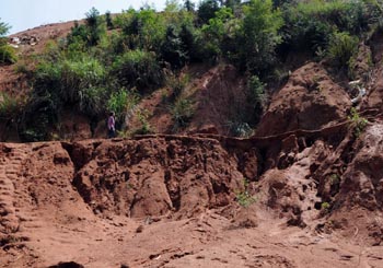 平南縣六陳鎮(zhèn)六合村,一非法稀土礦開采點(diǎn)造成嚴(yán)重的水土流失。 |