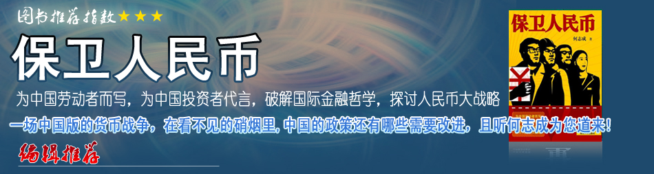 | 我對(duì)于中國(guó)經(jīng)濟(jì)一向樂(lè)觀。金融危機(jī)以來(lái),我發(fā)表了一系列文章抨擊市場(chǎng)上財(cái)經(jīng)術(shù)士的所謂“危機(jī)論”。當(dāng)我第一眼看到何志成先生的新書(shū)《保衛(wèi)人民幣》時(shí),不禁被書(shū)名驚詫了,難道他也被某些悲觀論調(diào)嚇倒了?…[詳細(xì)] |