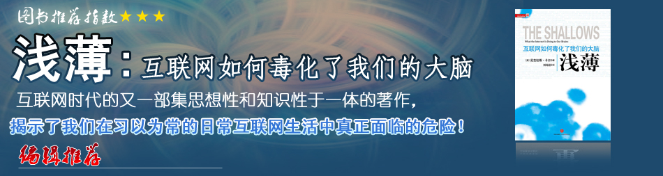| 卡爾讓人心悅誠服地認(rèn)識到,所有的信息技術(shù)都會帶來一種智能倫理。印刷圖書如何讓我們進(jìn)入聚精會神的狀態(tài),從而促進(jìn)深度思維和創(chuàng)造性思維的發(fā)展。相比之下,互聯(lián)網(wǎng)鼓勵我們蜻蜓點水般地從多種信息來源中廣泛采集碎片化的信息,其倫理規(guī)范就是工業(yè)主義,這是一套速度至上、效率至上的倫理,也是一套產(chǎn)量最大化、消費最大化的倫理——如此說來,互聯(lián)網(wǎng)正在按照自己的面目改造我們。我們變得對掃描和略讀越來越得心應(yīng)手,但是,我們正在喪失的卻是專注能力、沉思能力和反省能力。在《淺薄》一書中,有智能技術(shù)的發(fā)展歷史,有大眾科學(xué)的普及知識,有文化批判的真知灼見,全書處處閃耀著令人難忘的智慧之光,這些內(nèi)容恰似對我們現(xiàn)代人的心智狀態(tài)所做的全面而深遠(yuǎn)的拷問。。 |
