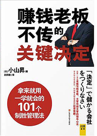 本書就是專門寫給中小企業(yè)老板、主管的管理書、決策學(xué)。作者小山以長達(dá)30年的武藏野企業(yè)CEO經(jīng)驗,結(jié)合中小企業(yè)每天都會遇到的經(jīng)營難題:如何做經(jīng)營計劃?為什么營業(yè)額很高,卻還是虧損?怎樣和銀行打交道?如何延攬優(yōu)秀人才?如何讓員工樂意執(zhí)行你的意愿?等等,提出101個讓企業(yè)穩(wěn)賺、永續(xù)經(jīng)營的關(guān)鍵決定,通過“如何決定經(jīng)營的藍(lán)圖,預(yù)見未來”;“如何決定經(jīng)營的模式,創(chuàng)造真正的盈利”;“如何決定員工的素質(zhì),為其創(chuàng)造向上的動力”,以及“如何決定組織的模式,打造最強的公司”四個方面,來講述讓企業(yè)成功的奧秘。