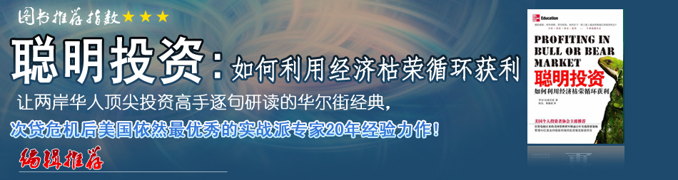 | 操盤投資前要識別經(jīng)濟(jì)大勢,如何確定經(jīng)濟(jì)熱冷,如何確定通脹通縮?在通脹或者通縮的時候,我們的投資股票放在什么行業(yè)會比較好點(diǎn):做生產(chǎn)的,做房產(chǎn)的,做消費(fèi)的,還是搞資源的?這些其實(shí)都跟經(jīng)濟(jì)的循環(huán)起伏很有關(guān)系的。要正確把握經(jīng)濟(jì)大勢,提高投資的預(yù)見性,把握物價,房價,外匯以及股價下一步的變化趨勢,《聰明投資:如何利用經(jīng)濟(jì)枯榮循環(huán)獲利》一書就給了我們一幅很好的投資四季地圖。 |