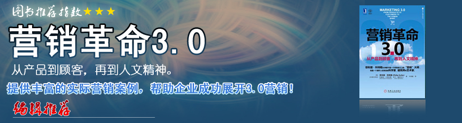 | 營銷3.0使我們從狹隘的關(guān)注“利潤,產(chǎn)品、消費(fèi)者”到深切的關(guān)注“人與地球”,關(guān)注那些人類千百年來所信仰的精神和普世價(jià)值。營銷3.0描述了一個(gè)新的營銷世界,他帶領(lǐng)我們從“我”營銷向“我們”營銷轉(zhuǎn)變,從“消費(fèi)者”營銷向“人”營銷轉(zhuǎn)變,它給我們提供了一個(gè)看待當(dāng)今消費(fèi)者的全新視角,它給我們指出了進(jìn)入馬斯洛人類需求模型最頂級(jí)“自我實(shí)現(xiàn)”的路徑…[詳細(xì)] |