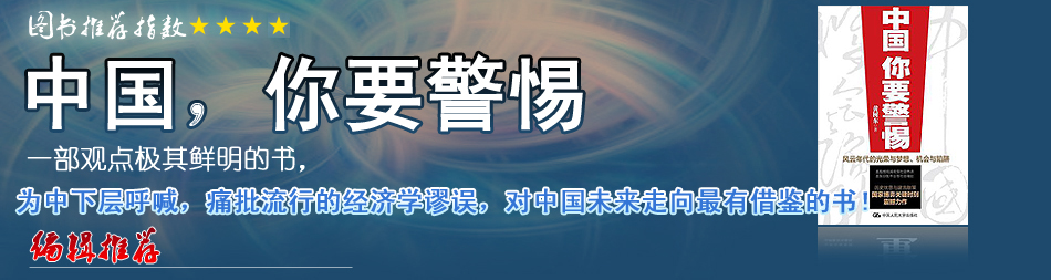 | 了解中國社會、理解社會現(xiàn)實(shí)、看清周邊環(huán)境、看清未來發(fā)展應(yīng)該看看這本書。不是完全贊同其中的某些觀點(diǎn),正如前面朋友有提到的過于主觀,但是畢竟代表了一部分人的看法,可供參考。 |