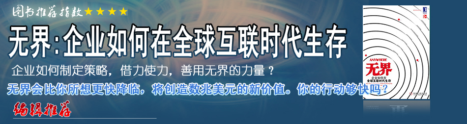 | 書中大多說的是企業(yè)該怎么在無界中生存,而我看到的卻是怎么在這個(gè)互聯(lián)網(wǎng)中尋找我們自己的位置和商機(jī)。 |