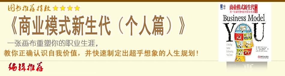 這世界越來(lái)越瘋狂。對(duì)企業(yè)而言,顧客在變,供應(yīng)商在變,競(jìng)爭(zhēng)對(duì)手在變,企業(yè)在不停地變化。對(duì)于個(gè)人而言,環(huán)境在變,能力在變,興趣在變,關(guān)系在變。這些變化多數(shù)都超越了大部分組織及個(gè)人的掌控范圍。 因?yàn)闊o(wú)法改變整體大環(huán)境,組織及個(gè)人為了持續(xù)生存及發(fā)展,就必須不斷評(píng)估及嘗試改變自己的商業(yè)模式,有時(shí)甚至要?jiǎng)?chuàng)建新的模式。這是一個(gè)瞄準(zhǔn)、射擊、再瞄準(zhǔn)的時(shí)代,我們需要適應(yīng)快速變化的世界,以全新的思考方式來(lái)指導(dǎo)規(guī)劃我們的人生。商業(yè)模式思維是適應(yīng)快速變化世界的最佳系統(tǒng)思考方式。 事實(shí)上你完全可以把自己視為只有一個(gè)人參與經(jīng)營(yíng)的企業(yè),個(gè)人商業(yè)模式描述的便是你應(yīng)該通過(guò)哪種方式來(lái)調(diào)動(dòng)全部才智天賦,以實(shí)現(xiàn)個(gè)人發(fā)展及職業(yè)發(fā)展的完美結(jié)合。 商業(yè)模式畫布隨著《商業(yè)模式新生代》的出版而逐步為中國(guó)的廣大讀者所熟知。而除了把商業(yè)模式畫布應(yīng)用于組織的商業(yè)模式描述、轉(zhuǎn)變、創(chuàng)新外,商業(yè)模式畫布更多地呈現(xiàn)出一種系統(tǒng)化的思維方式,這也正是我們看重并將其引入中國(guó)的重要原因。作為一種系統(tǒng)思考問(wèn)題的方法論,它不局限于組織的商業(yè)模式設(shè)計(jì),同樣可以應(yīng)用于其他領(lǐng)域。在2012年年初,各出版社又引進(jìn)了3本圍繞商業(yè)模式畫布主題的圖書。它們分別是《商業(yè)模式新生代(個(gè)人篇)》(Business