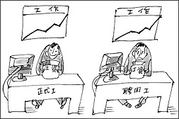 中華全國(guó)律師協(xié)會(huì)勞動(dòng)法與社會(huì)保障法委員會(huì)副主任梁智:原則意義上說現(xiàn)在已經(jīng)沒有正式工和臨時(shí)工之分了,因?yàn)槲覀儑?guó)家勞動(dòng)法從95年實(shí)行之后,就在96年推行全國(guó)全員勞動(dòng)合同制。勞動(dòng)合同制就是將勞動(dòng)者和用人單位的關(guān)系全是一視同仁的,只要是建立了勞動(dòng)關(guān)系,不是現(xiàn)在那些采取非全日制用人形式那些勞動(dòng)者,都應(yīng)該是同工同酬的。 臨時(shí)工現(xiàn)在沒有這個(gè)稱謂,只是叫做非全日制用工。他與其他的正式工同樣的勞動(dòng)時(shí)間,同樣的勞動(dòng)強(qiáng)度,有的甚至在同樣的崗位上,但是獲得的勞動(dòng)報(bào)酬卻不是同樣的,這就叫做同工不同酬。這種現(xiàn)象來(lái)說就是用人單位利用勞動(dòng)者不懂勞動(dòng)法,也沒有貫徹執(zhí)行勞動(dòng)法律,是故意侵害勞動(dòng)者勞工報(bào)酬權(quán)力這樣一種行為。
