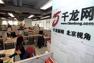 | 2000年2月成立的千龍網(wǎng)是國(guó)內(nèi)第一家由國(guó)務(wù)院新聞辦公室批準(zhǔn)成立的政府新聞網(wǎng)站。千龍網(wǎng)成立初期正值網(wǎng)絡(luò)媒體興起的時(shí)期,活躍在網(wǎng)絡(luò)媒體潮頭的千龍網(wǎng)創(chuàng)造了輝煌的戰(zhàn)績(jī)。新華社記者