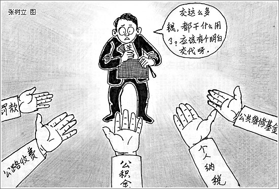 ■ 我國(guó)的收費(fèi)項(xiàng)目可以說是多得數(shù)不清,每年到底收了多少錢?這些錢都拿去干什么了?用掉了多少?還剩多少?確實(shí)應(yīng)該公開。財(cái)務(wù)不透明,腐敗就不可避免。百姓交了錢卻無(wú)權(quán)知道它們的去處,這合理嗎?
