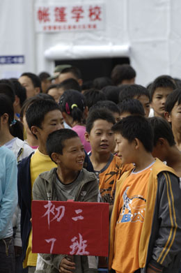 攝 | 9月8日,攀枝花地震重災(zāi)區(qū)元謀縣姜驛鄉(xiāng)15所中小學(xué)校全部開學(xué)。在姜驛中心小學(xué),740名四里八鄉(xiāng)的彝族、傈僳族孩子們,走進(jìn)了解放軍叔叔為他們新搭建的“帳篷學(xué)校”,領(lǐng)到了部隊(duì)贈(zèng)送的各種文具及生活用品。 四川攀枝花地震中,距震中僅17公里的姜驛鄉(xiāng)受災(zāi)嚴(yán)重,全鄉(xiāng)學(xué)校不同程度受損,當(dāng)?shù)卣疀Q定推遲至9月8日開學(xué)。駐滇某師高炮團(tuán)完成搶救群眾生命財(cái)產(chǎn)的任務(wù)后,于9月3日緊急投入到援建受災(zāi)學(xué)校的戰(zhàn)斗中。5天來,這個(gè)團(tuán)為確保受災(zāi)學(xué)校如期開學(xué)而突擊,累計(jì)出動(dòng)官兵1600余人次,從危房中搶救出價(jià)值20余萬元的課桌、教材等,平整場(chǎng)地5000余平方米,搭建活動(dòng)板房18間、帳篷248頂,贈(zèng)送了價(jià)值4.5萬余元的教學(xué)物資和學(xué)習(xí)生活用品。 7日晚,最后一批鐵床材料和組裝課桌緊急運(yùn)抵姜驛后,團(tuán)長(zhǎng)蘇小林和二營(yíng)官兵通宵作業(yè),緊急焊裝組合鐵床159鋪、課桌700張,一直忙碌到天亮,沒有誤了學(xué)生如期開學(xué)上課。 在整潔有序的學(xué)生住宿帳篷區(qū),來自阿拉益村的姜驛中學(xué)初一學(xué)生杞金麗找到了貼有自己姓名的床鋪。她開心地看到,散發(fā)著新棉絮香味的被子鋪好了,床下整齊地?cái)[放著拖鞋、臉盆和洗漱用具。當(dāng)她沿著床梯往上鋪爬時(shí),發(fā)現(xiàn)連鐵床轉(zhuǎn)角焊接的鋒利處,都被解放軍叔叔細(xì)心地纏上了布?jí)|!敖夥跑娛迨鍨槲覀兿氲锰艿搅!”杞金麗感動(dòng)地說。 上午,帳篷里傳出瑯瑯讀書聲,但官兵們并沒有休息,五連排長(zhǎng)吳榮春正帶著戰(zhàn)士們?cè)趧倓傞_辟的學(xué)校臨時(shí)食堂附近,用砍刀清除著兩側(cè)的荊棘……