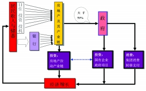 2009年預(yù)計(jì)有5.8萬億的巨額資金直接進(jìn)入房地產(chǎn)業(yè),此外,還有更大規(guī)模的社會儲蓄通過銀行貸給開發(fā)商及相關(guān)產(chǎn)業(yè)。房地產(chǎn)業(yè)及其產(chǎn)業(yè)鏈將其中的一大部分資金分流給了政府,政府以此進(jìn)行投資,另一部分流到房地產(chǎn)相關(guān)產(chǎn)業(yè)。中國社會中最巨額的儲蓄和中國老百姓中最大量的資金是通過房地產(chǎn)業(yè)進(jìn)入經(jīng)濟(jì)中的。因此,房地產(chǎn)業(yè)是我國現(xiàn)行經(jīng)濟(jì)增長模式中,將社會儲蓄轉(zhuǎn)化為投資,特別是政府投資的最大的轉(zhuǎn)化器。房地產(chǎn)的價(jià)格上漲是保證各級政府收入的需要,是巨額投資的資金來源,是我國目前經(jīng)濟(jì)增長模式的最重要支撐。如果改變房地產(chǎn)業(yè)的現(xiàn)狀,必然嚴(yán)重沖擊現(xiàn)行的經(jīng)濟(jì)增長模式。換一種說法,如果在經(jīng)濟(jì)增長模式作出適應(yīng)性調(diào)整之前,房地產(chǎn)業(yè)的重大調(diào)整將帶來經(jīng)濟(jì)增長模式的崩潰。這也是很多人用來維護(hù)房地產(chǎn)業(yè)現(xiàn)行運(yùn)行格局的理由。