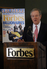 《福布斯》雜志總編輯史蒂夫·福布斯作出判斷:“在我們這個(gè)地球上,更多的人經(jīng)濟(jì)狀況好于以往……這(2006年)是人類歷史上最為富足的年份! 《福布斯》雜志編輯說(shuō),單純?nèi)《雀缓狸J入排行榜的前20名,“就是一段非同尋常的故事”。 |
