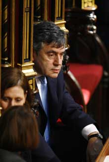 備受責(zé)難的英國財政部財政大臣戈登·布朗 |