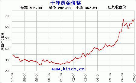 金價由每盎司500美元大幅上揚(yáng)至730美元。